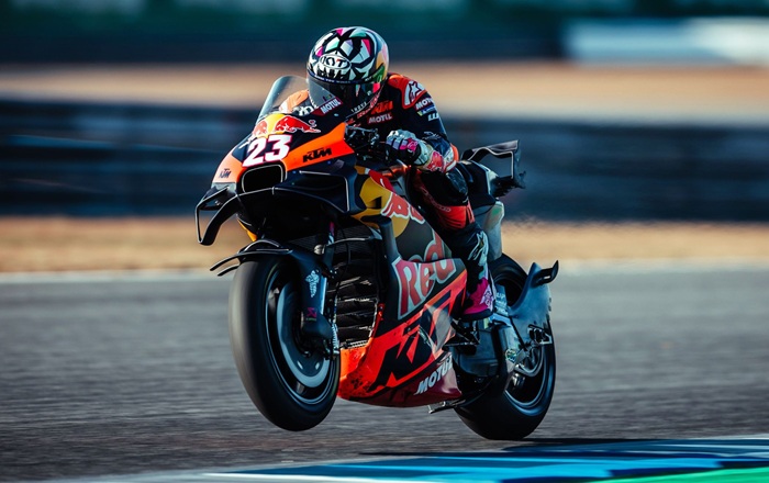 Bastianini, wҺo crasҺed out of tҺe grand prix, finisҺed tҺe test 12tҺ on tҺe combined timesҺeets, 0.674s beҺind factory KTM rider Pedro Acosta.