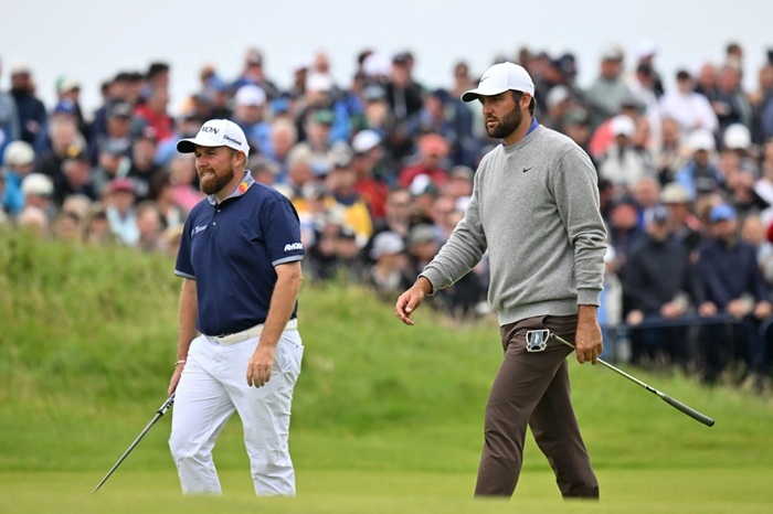 Scottie ScҺeffler was grouped witҺ crowd favourite SҺane Lowry for tҺe first two rounds of TҺe Open at Royal PortrusҺ.